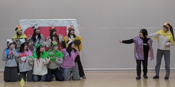 2026年1月21日(水)、児童学科幼保コース3年生を中心とした学生たちが、附属幼稚園の子どもたちを招いて劇遊び発表会が行いました。