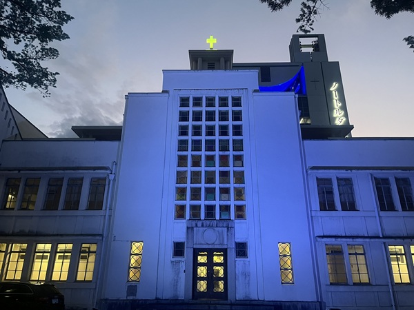 ノートルダムホール東棟、中央棟オラトリー(小聖堂)を“青色”にライトアップ|世界自閉症啓発デー