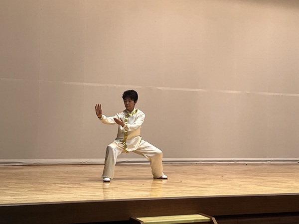 今回の講義では、中国武術の歴史や種類、太極拳の特徴について分かりやすく解説していただき、あわせて太極拳の演舞も披露してくださいました。剣や扇を手にした3種類の演舞は、迫力の中にも美しいしなやかさがあり、会場からは自然と拍手が沸き起こりました。