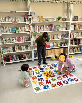お子様向けには、アルファベットが書かれたお手玉をバケツに投げ入れたり、マットの上で文字を探したりと、体を動かしながらアルファベットを覚えられるゲームを用意しました。