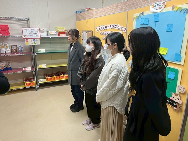 個人や地域企業(フードパートナー)からいただいた食料品などを会場内に陳列し、登録した方(フードメイト)が自由に取りに来ることができる仕組みです。パントリー入口には電子ロックが付いており、無人運営で行われているため、安全が確保され、周囲の目を気にせず利用できる工夫がされていました。実際に高頻度で利用している方もいると聞き、地域にとって必要不可欠な取り組みだと感じました。