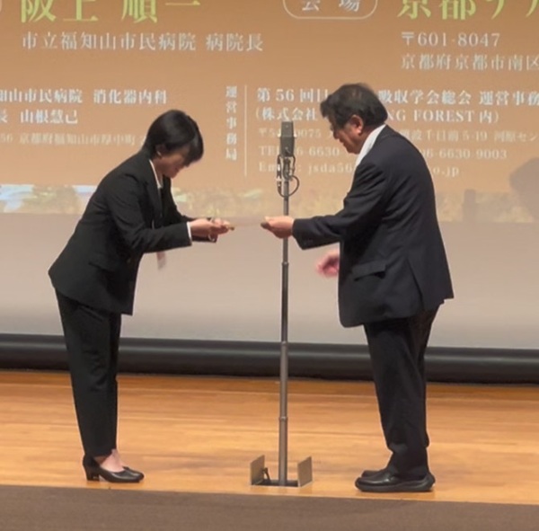 本学大学院人間生活学研究科人間複合科学専攻博士後期課程2年の橘髙充加さん(小林謙一ゼミ)が、日本消化吸収学会第28回学会賞(天野学術研究奨励賞)に選ばれ、10月18日京都で開催された第56回日本消化吸