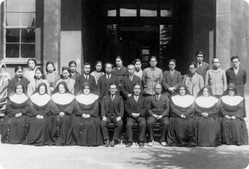 In 1924, six sisters who practiced the spirit of St. Julie Billiart were dispatched from the Sisters of Notre Dame de Namur in the Waltham Province of the State of Massachusetts, U.S.A. to take over the Seishin Koto Jo Gakko.Located in the Town of Yumino, Okayama City at the time, the Seishin Koto Jo Gakko was run by a different French convent.In 1886, sisters from the Congregation of the Sisters of the Infant Jesus of Chauffailles paid a visit to Okayama Prefecture at the request of Tsuru, the daughter of Takamasa Chisaka who served as prefectural governor at the time. There, the sisters founded the Okayama Girls' School, the first private school for girls in Okayama City.Subsequently, the name of the institution underwent several modifications, including a change to Maikai Girls' Private School and Maikai Girls' Private High School. In 1911, the institution was renamed again to the Seishin Koto Jo Gakko. This became the parent body of Seishin School Corporation as it exists today.Then, in 1924, in line with a change in its missionary area, the Congregation of the Sisters of the Infant Jesus of Chauffailles withdrew from Okayama. At the request of Archbishop Doering (Bishop of Hiroshima), the Sisters of Notre Dame de Namur would take over management of the institution.On August 13, 1924, with the institution now under the management of the Sisters of Notre Dame de Namur, the new "the Seishin Koto Jo Gakko" was established.In 1929, a new school building lauded as the finest in the Orient was built in Kamiifuku (the current location of the university) in northern Okayama City, where rural scenery still remained at the time. In the following year, the institution was relocated from the Town of Yumino, Okayama City in an attempt to improve its environment and enhance its facilities and educational content.