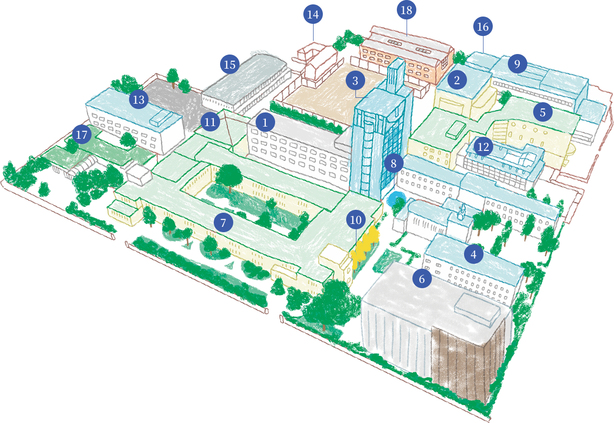 Built in 1929, this is the University’s first building and is a valuable building registered as a Tangible Cultural Property of Japan. In addition to lecture rooms, it houses the main facilities of the University, including the bulletin board. With the lush green courtyard and gingko trees that adorn the campus nearby, students can enjoy their university life while experiencing nature on a daily basis.