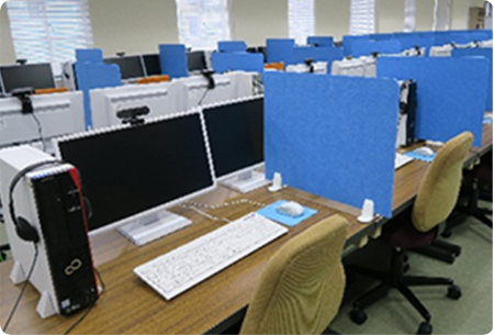 共用パソコンを設置している部屋には、パーティションを設置しています。