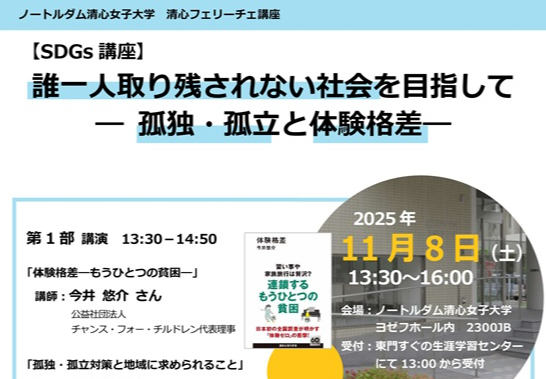 11/8「誰一人取り残されない社会を目指して―孤独・孤立と体験格差―」|清心フェリーチェ講座のお知らせ