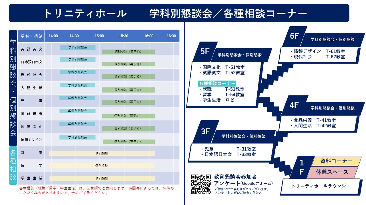 大学の現状や取り組みを知っていただく機会として、また、学生生活全般や就職、留学など、日頃ご不安に思われていることなどを解消していただく機会としてご参加いただけますと幸いでございます。