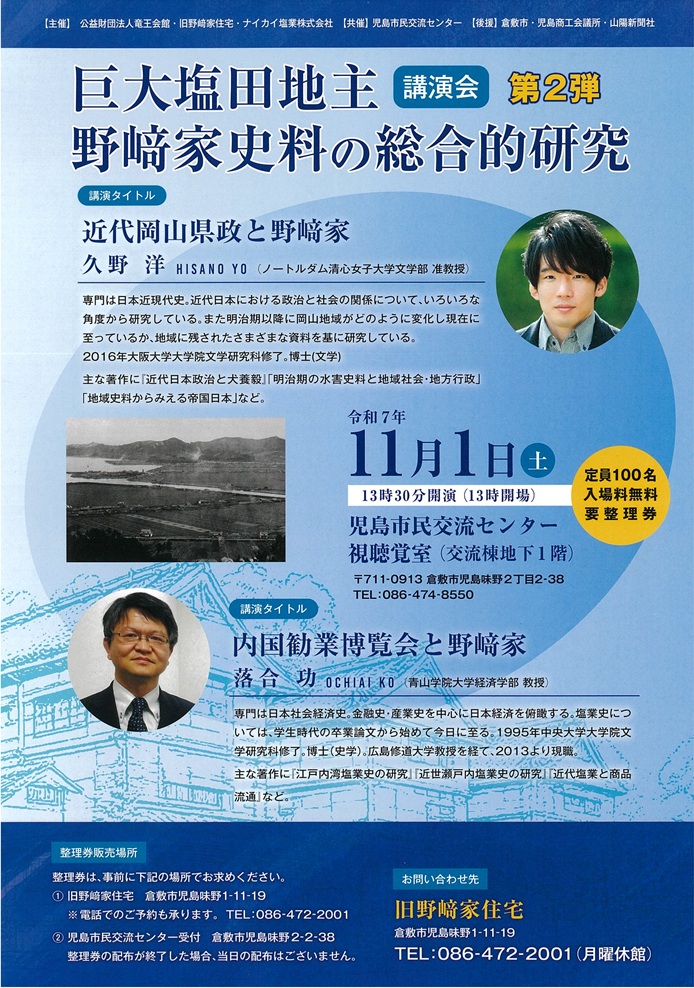 主催:公益財団法人竜王会館・旧野崎家住宅・ナイカイ塩業株式会社