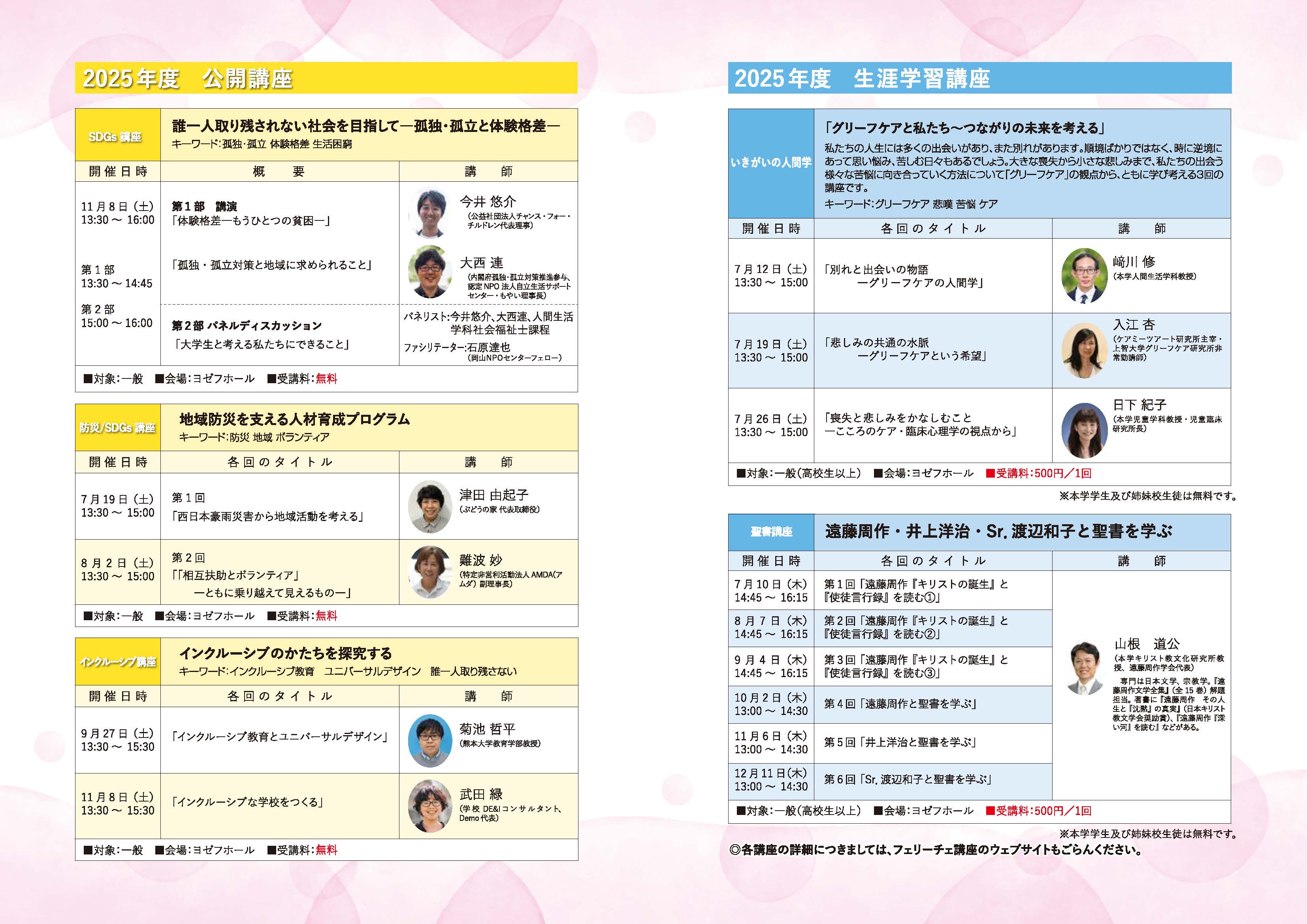 清心フェリーチェ講座(生涯学習センター)では、以下の講座を開講しますので、ご案内いたします。